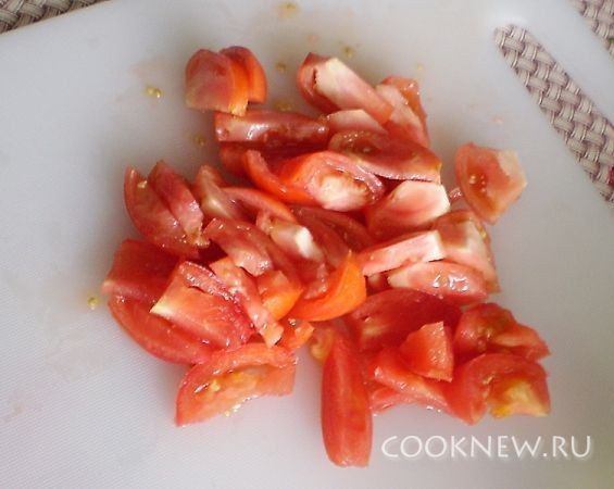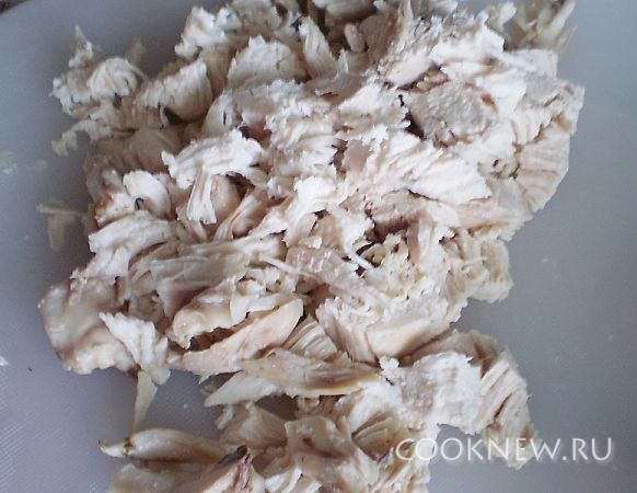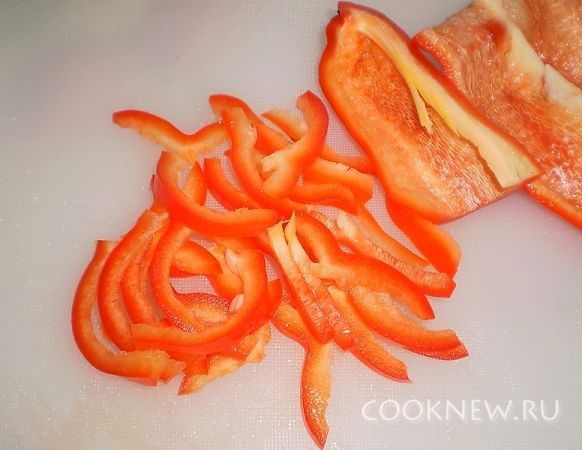 Перец очищаем от семян и перегородок. Режем соломкой и добавляем в салатницу.