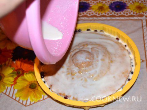 Полить пирог смесью и поставить в холодильник на пару часов.