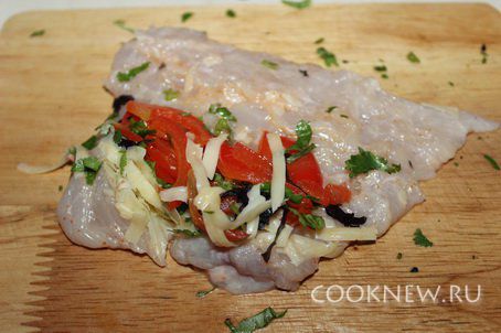 Начинку кладем на мясо, заворачиваем,посыпаем паприкой и отправляем в микроволновку на 25-30 минут.