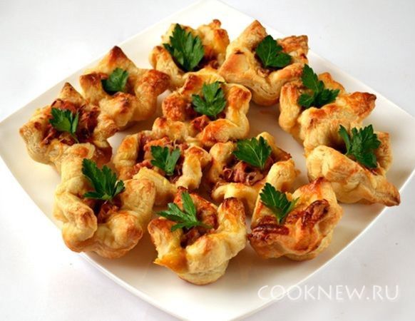 Ставим в разогретую духовку до 180 на 15 минут. Затем украшаем листиками петрушки.