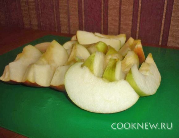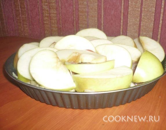 В форму для запекания выложить мясо со всеми ингредиентами, сверху положить яблоки. Выпекать в духовке 240 С 45 минут.