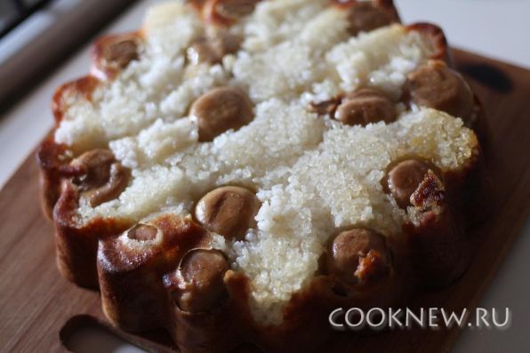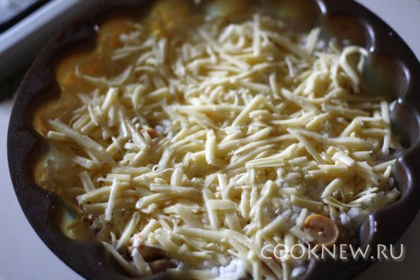 Выпекать на среднем огне 45 минут. Затем перевернуть пирог.