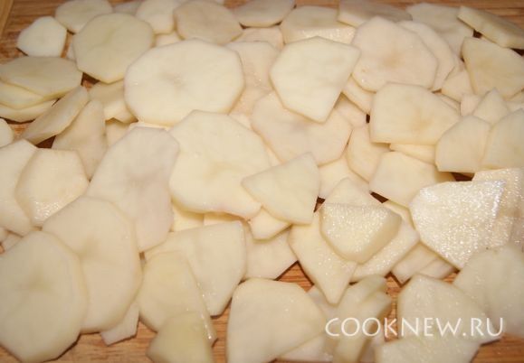 Укладываем вокруг курицу в несколько слоев. Слегка солим.