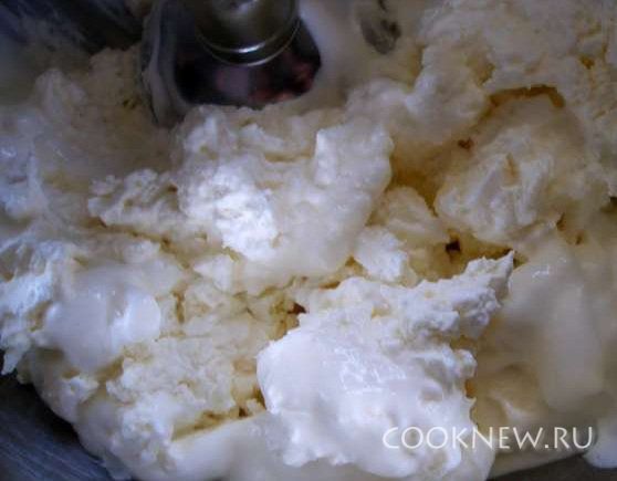 Сметану взбить с сахаром, творогом и соком 1 лимона.