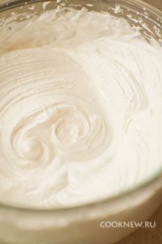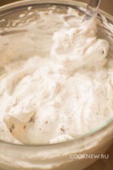 Коржи-безе нужно испечь с вечера. Орехи порубить и поджарить. Охлажденные белки взбиваем со щепоткой соли до хорошей пены.