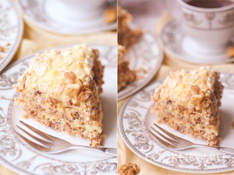 Украшаем измельченными орехами и безе без орехов. Убираем в холодильник на 2 часа.