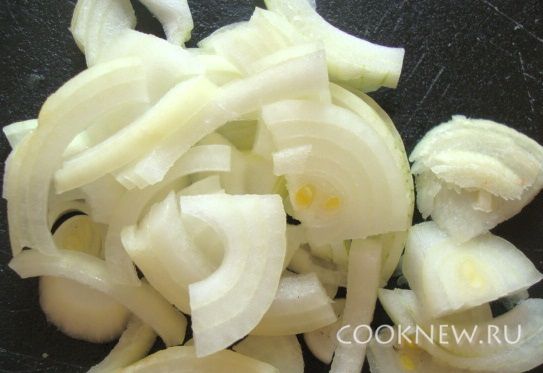 Лук порезать и обжарить на растительном масле.