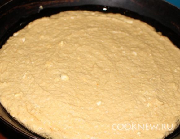 Форму смазать маргарином и выложить наше тесто.