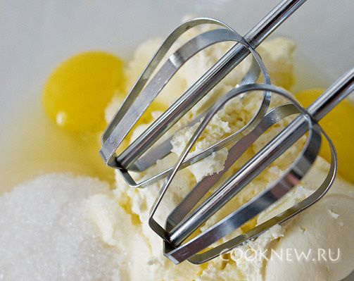 Желтки смешать с остальной половиной сахара и сливочным/творожным сыром. Сюда же добавить сметану, шоколад, ванильный сахар, цедру 1 лимона и крахмал. Перемешать до однородной массы.