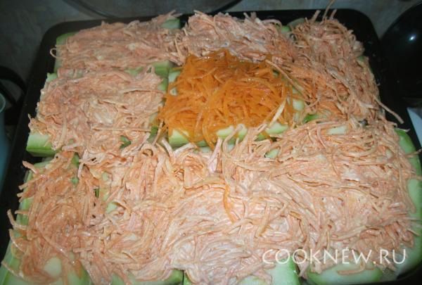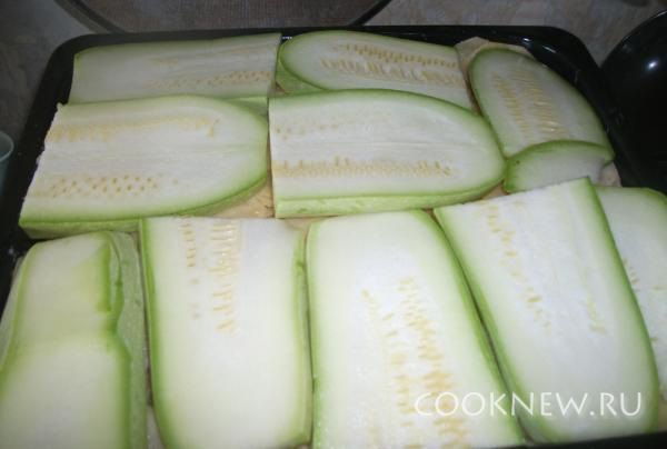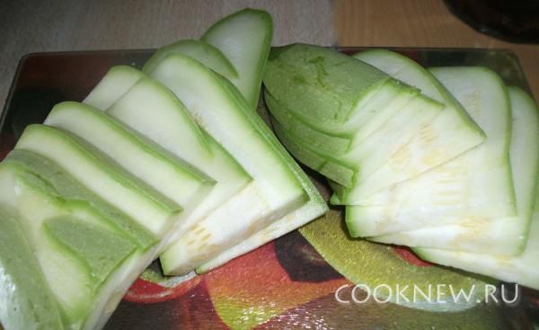 Нарезать кабачок (если он не молодой, то очистить от кожуры и семян).