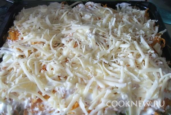 Затем достаем,смазываем сметаной и посыпаем тертым сыром.