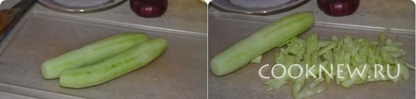 Огурцы порезать соломкой.