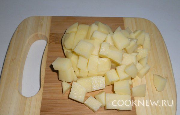 Картофель чистим и режем кубиками.