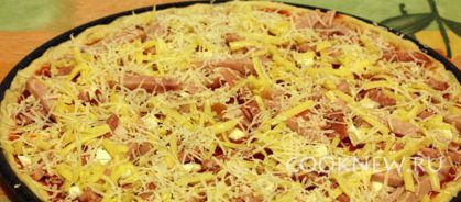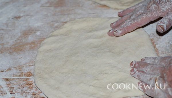 Тесто раскатать, выложить в форму, смазанную маслом, тесто смазать томатным соусом.