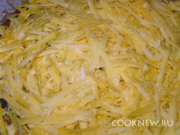 Сыр натереть. Посыпать блюдо сыром и убрать в духовку еще на 10 минут.