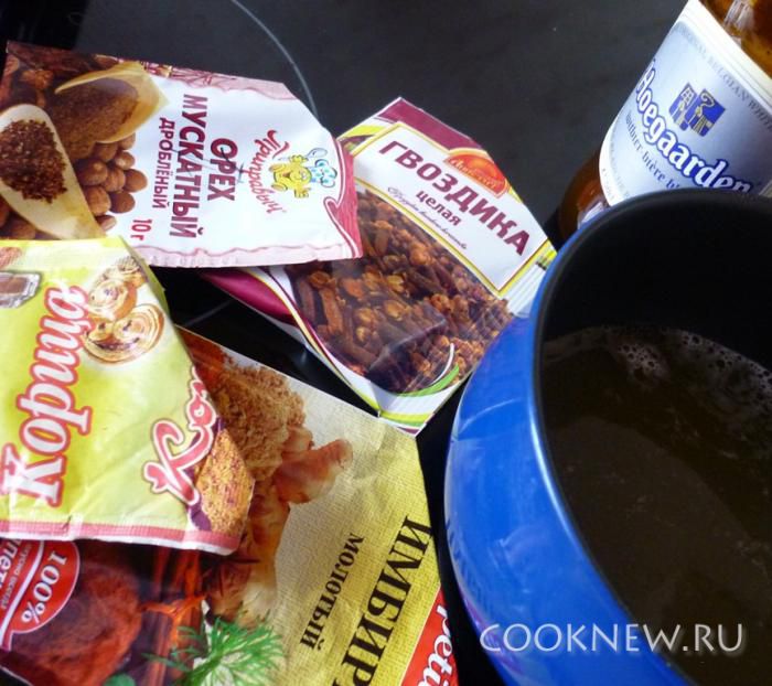 Нагреть пиво, добавить специи.