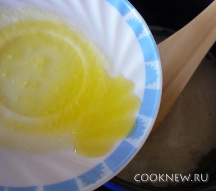 Растопить масло и добавить к смеси. Поварить еще 5 минут.