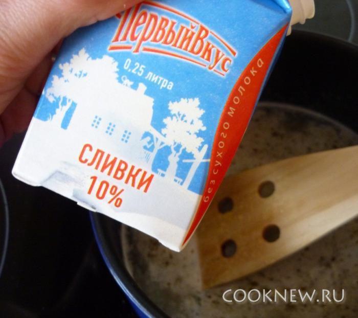 Добавить сливки. Перемешать, немного поварить, не давая кипеть. Наш напиток должен немного увариться.