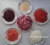 Все ингредиенты режем кубиками.