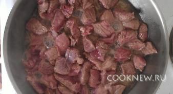 Мясо обжарить до корочки и исчезновения воды.