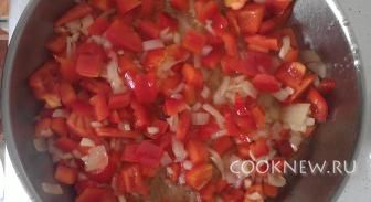 Отдельно на сливочном масле обжарить лук, перец и чеснок.
