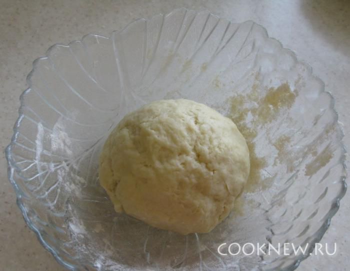 Замесить тесто, скатать в шар, накрыть пищевой пленкой и убрать в холодильник на 10-15 минут.