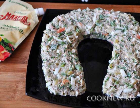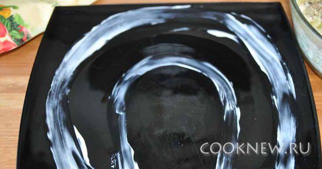 На плоском блюде нарисовать майонезом контуры подковы.