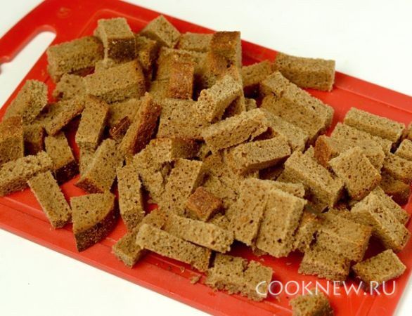 Хлеб порезать брусочками.