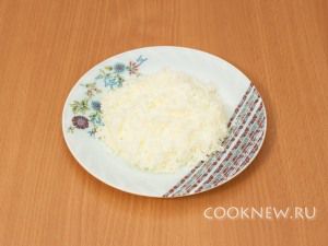 Отварить яйца, белки натереть на терке.(желтки не нужны).