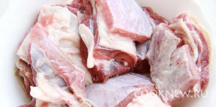 Говядину порезать на кусочки.