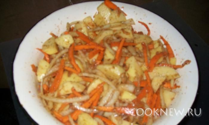 Порезать картофель (только не соломкой). натереть помидор и добавить к картофелю. Все смешать, добавить растительное масло и приправу для картофеля (по усмотрению).