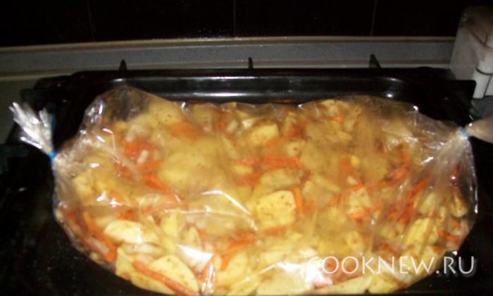 Складываем все в пакет для запекания. Ставим в разогретую до 180 С духовку на 1,5 часа.