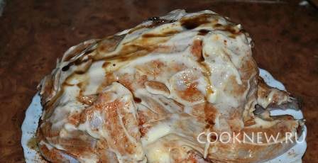Обмазать курицу майонезом и полить соевым соусом. Убрать на 2 часа в холодильник.