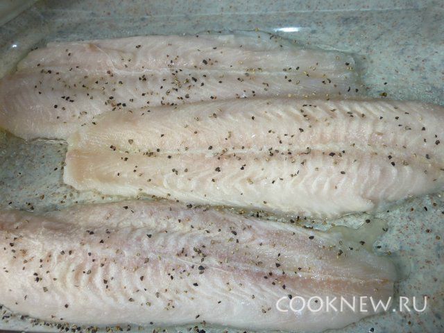 Рыбу полить лимонным соком, посолить, поперчить и положить в форму, смазанную растительным маслом.