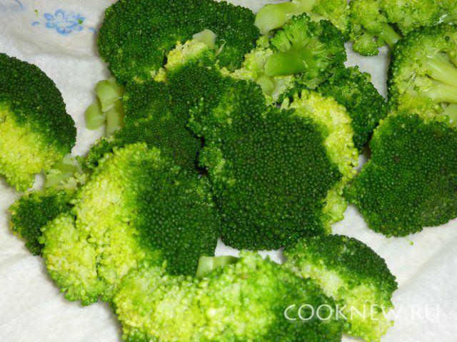 Брокколи отварить в подсоленной воде 5 минут.