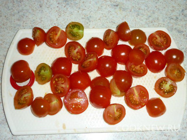 Помидоры разрезать пополам.
