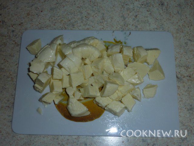 Шарики Моцареллы тоже разрезать пополам.