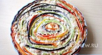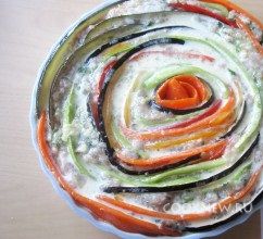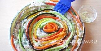 В середину вставляем свернутую спираль морковь. Затем все остальные овощи.
