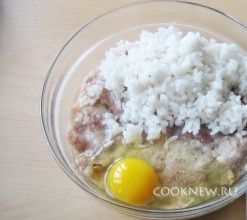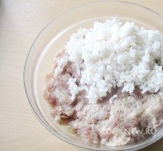 Чистим лук и чеснок. Прокручиваем их вместе с мясом через мясорубку. Рис отвариваем и добавляем к фаршу.