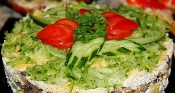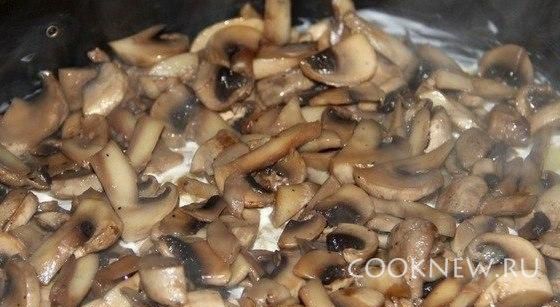 Затем выкладываем обжаренные грибы (без майонеза).