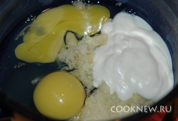 Маринад: яйца + майонез (5 столовых ложек) + натертый чеснок.