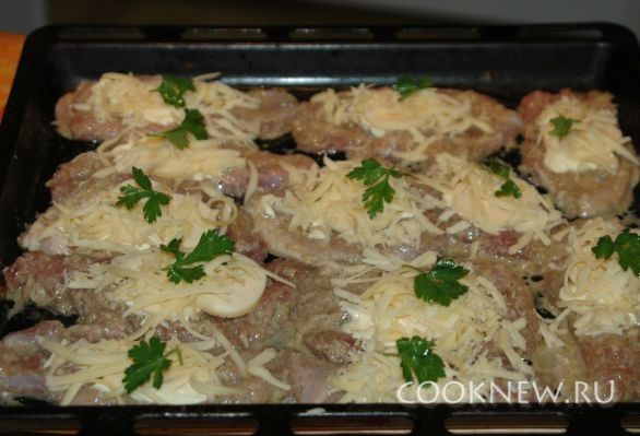 Сверху посыпать тертым сыром и петрушкой. Поставить запекаться примерно на час.