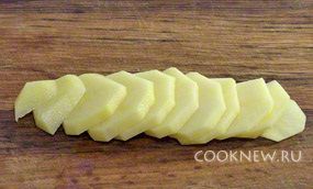 Картофель нарезать ломтиками.