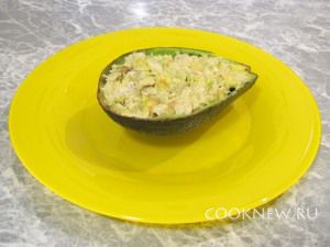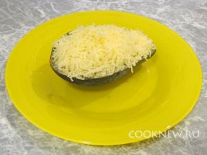 Запекать в духовке при 180 С 10 минут (готовность определять по сыру). Шкурка от авокадо не съедобна.