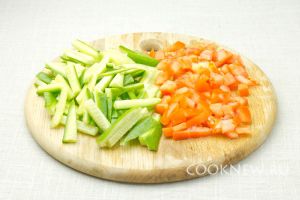 Выдавить сок половины лайма. Поперчить, посолить по вкусу. Перемешать.