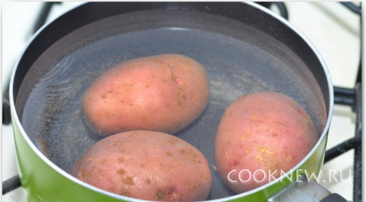 Отварить картофель в мундире.