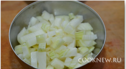 Нарезать лук.
