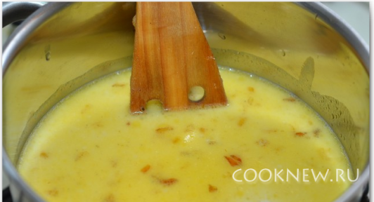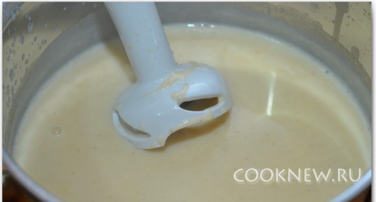Снять с огня. Взбить блендером. Накрыть крышкой и дать постоять минут 10.