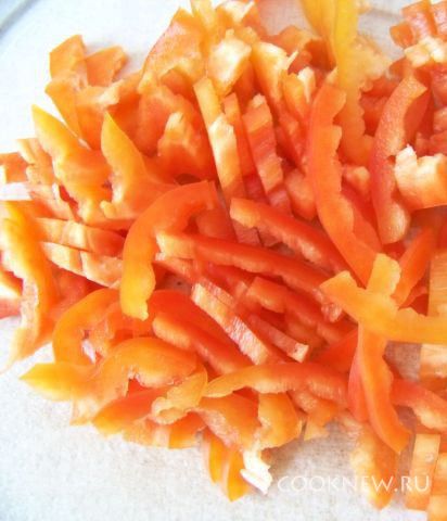 Перец очистить от семян и порезать полосками.