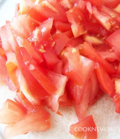 Некрупно порезать помидоры.